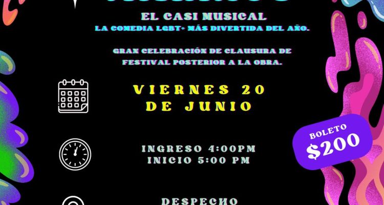 Cierre del festival con la presentación de “Marinos: El casi musical”, una comedia LGBT+ descrita como la más divertida del año. Al finalizar la obra, se llevará a cabo una gran celebración de clausura.
